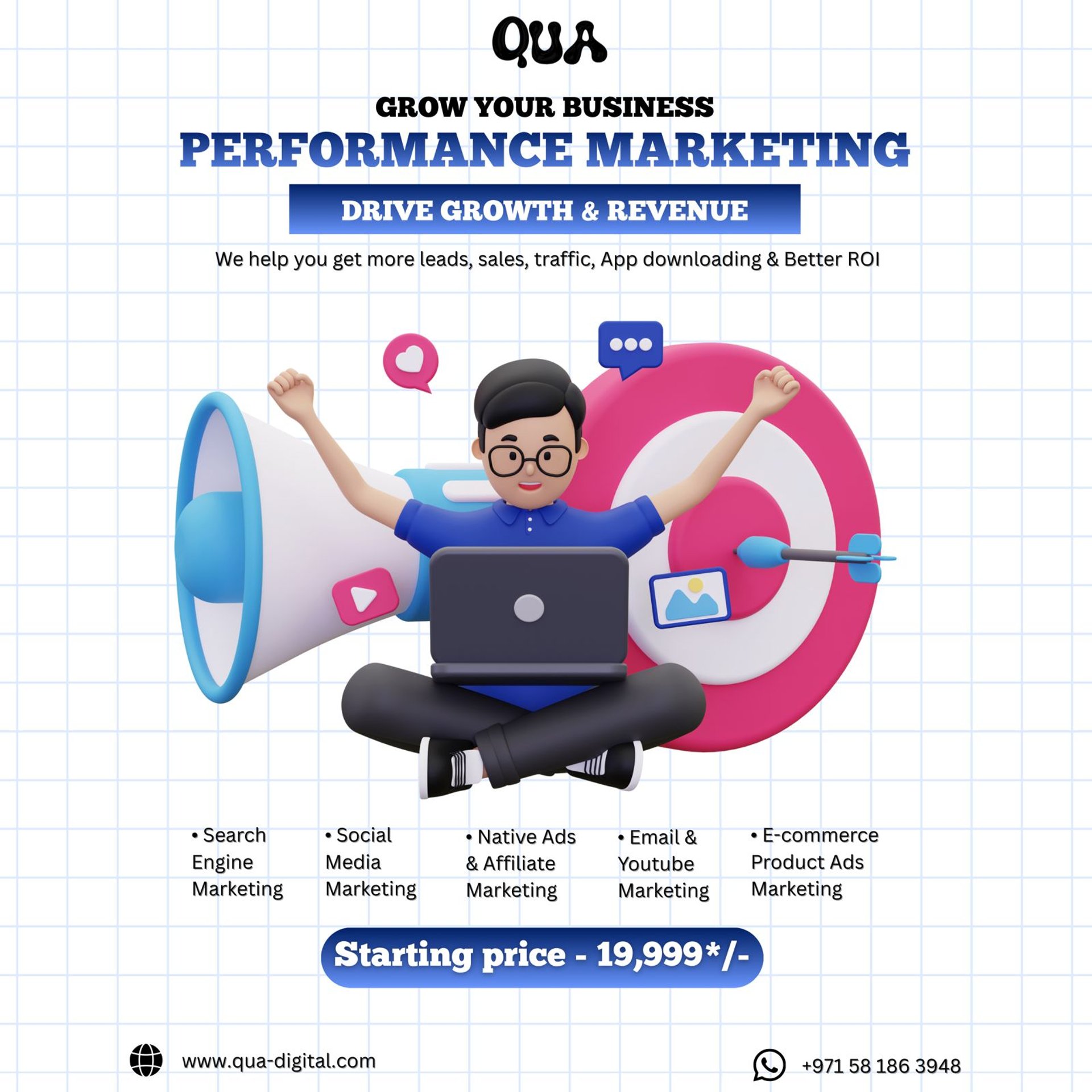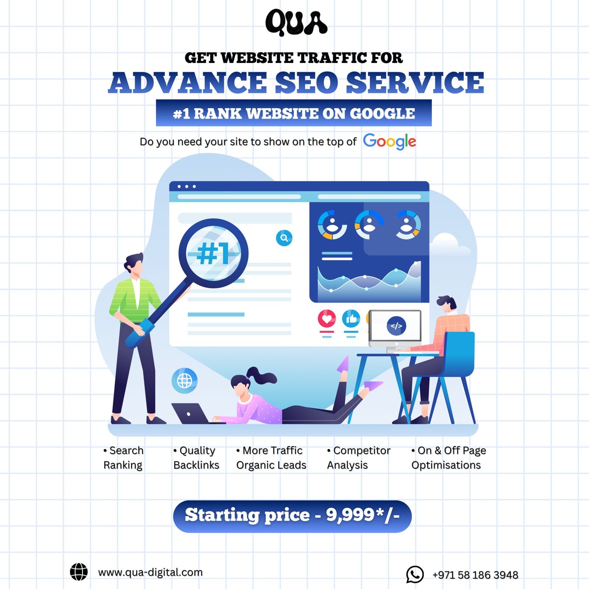 QUA Digital is a premium digital marketing agency based in Jammu, operating in India, Dubai, and worldwide. We specialize in SEO services, performance marketing, branding, websites, social media marketing, paid ads, AI automation, and lead generation for businesses focused on real ROI.
